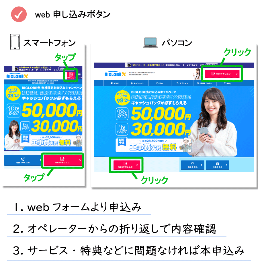 ただし、「【公式】BIGLOBE光」のみは適応可能です。(条件は変わる可能性があるので、申込時によく確認を)