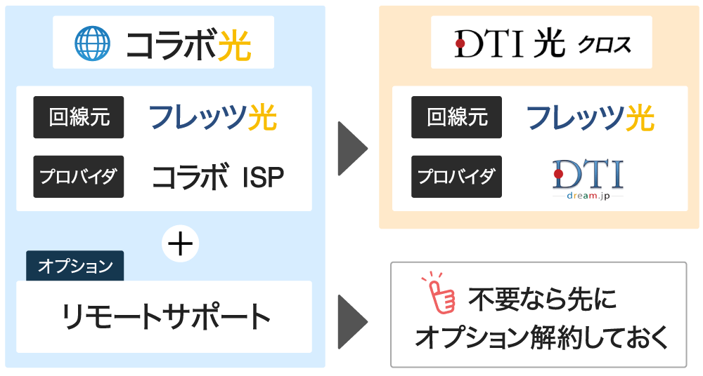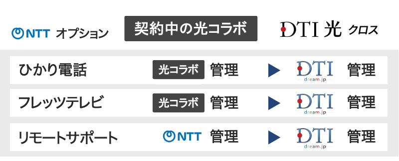 DTI光クロスに変更することで、問合せ先はDTIに集約されます。