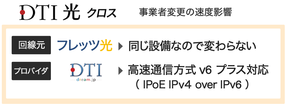 下記の内容を光コラボのオペレーターに聞いておきましょう。旧光コラボが廃止されるタイミングで、DTIの高速通信「IPv6」が使えるようになるからです。