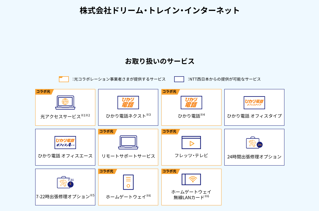 NTT西日本「株式会社ドリーム・トレイン・インターネット取扱いサービス」(DTI運営会社)