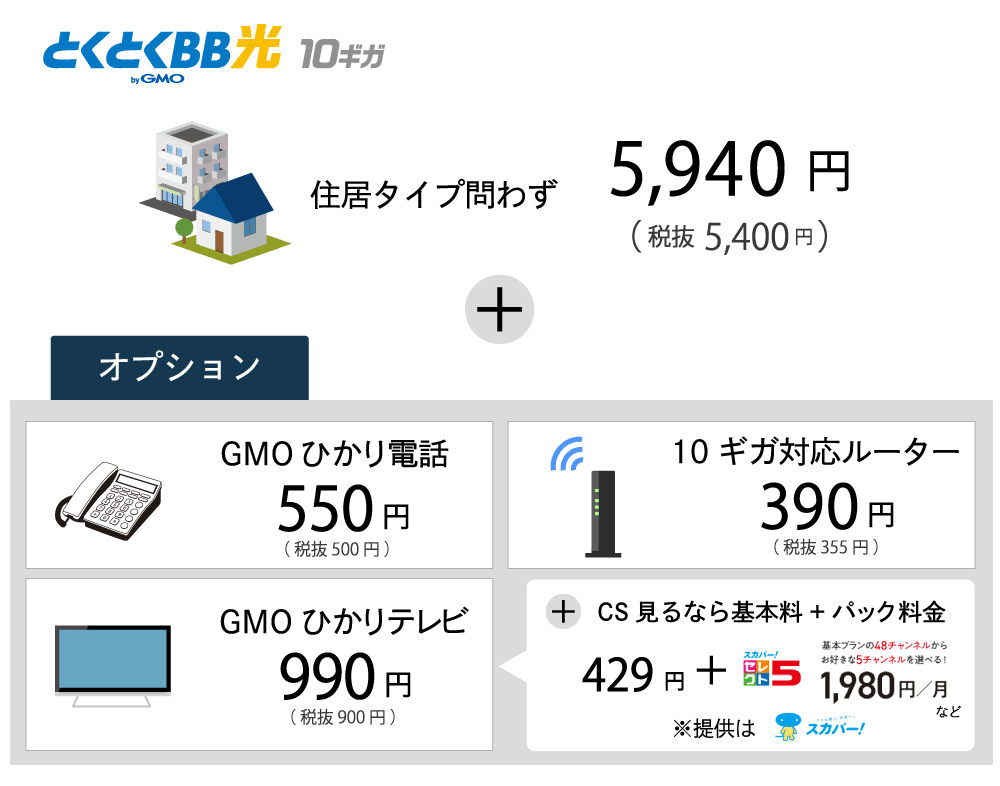 GMOとくとくBB光10ギガの月額は「5,940円」で、プロバイダ料も含まれています。