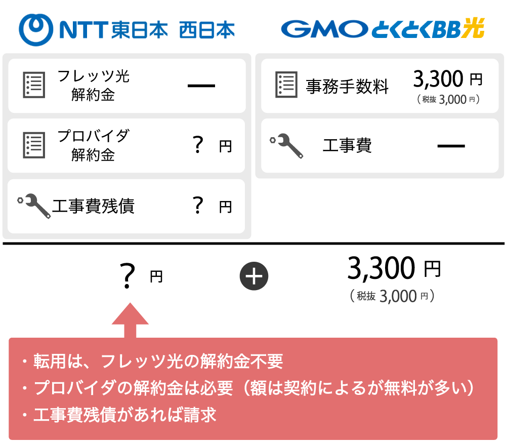 多くは無料ですが、プロバイダの解約金。またはフレッツ光の工事費残債がある場合は請求となります。