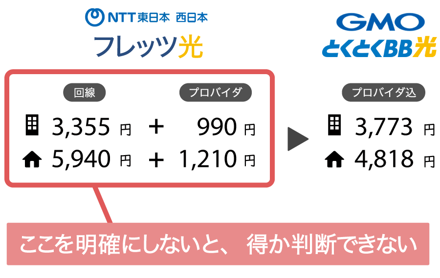 フレッツ光の料金だけ見ず、プロバイダを含めてみる必要があります。