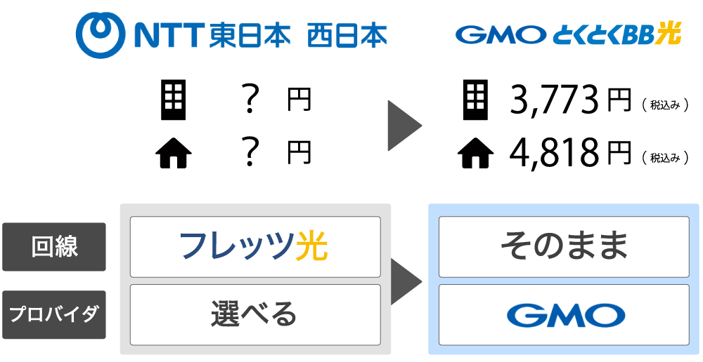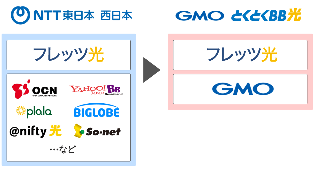 簡単に考えれば、今使っているフレッツ光をプロバイダ含めてGMO一括管理するだけなので、サービスに大きく差はありません。