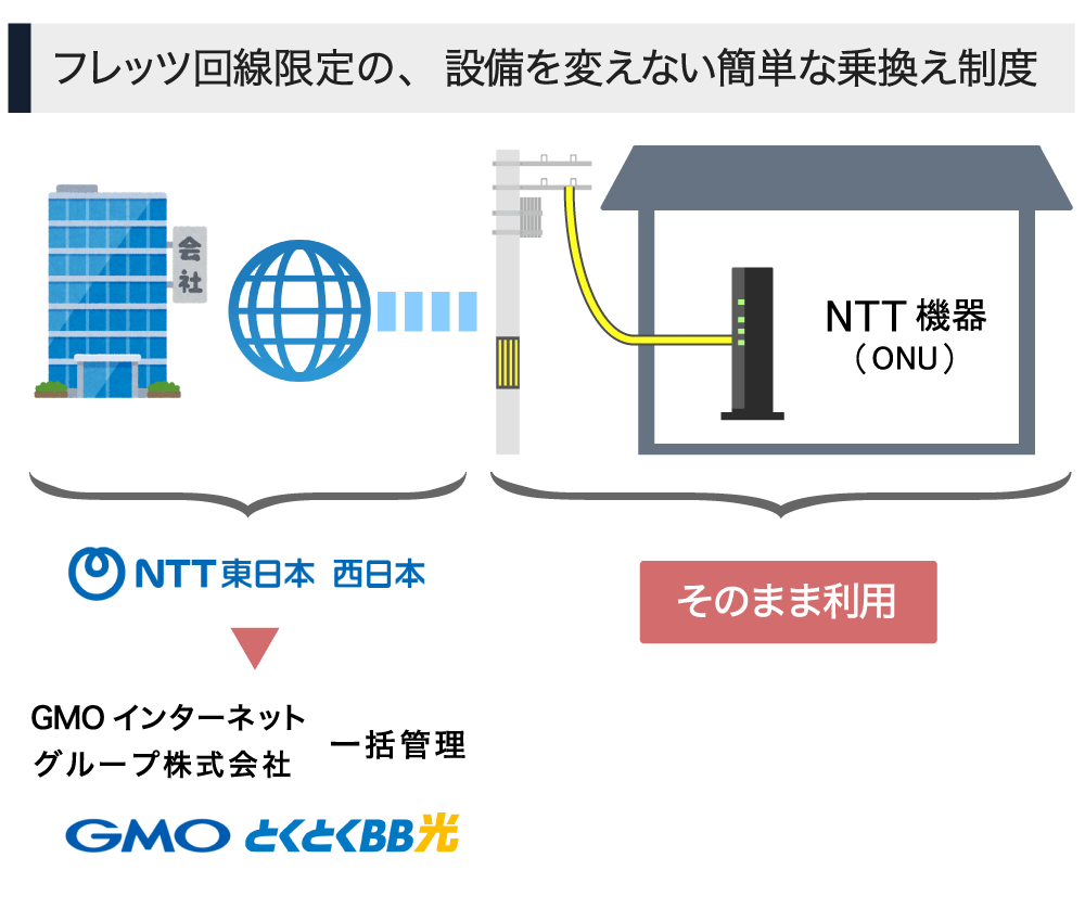 いまフレッツ光を利用中なら「転用」という制度を使えば、工事不要で乗換えが可能です。