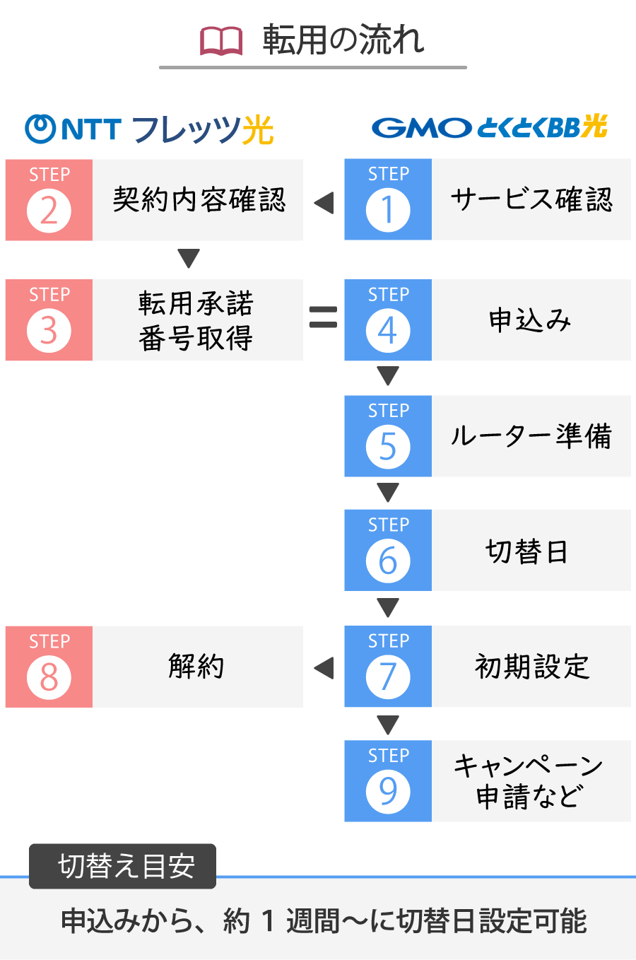転用、つまりフレッツ光の設備を継続利用して乗り換える。