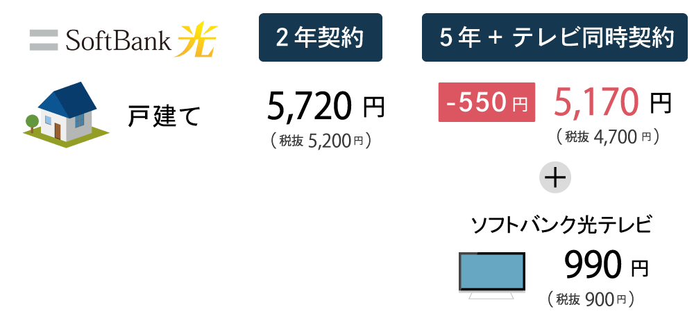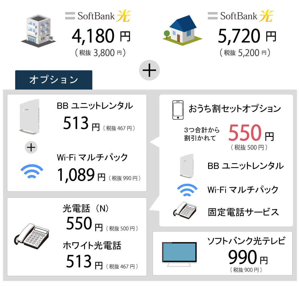 ・フレッツ光+プロバイダ=SoftBank光基本料